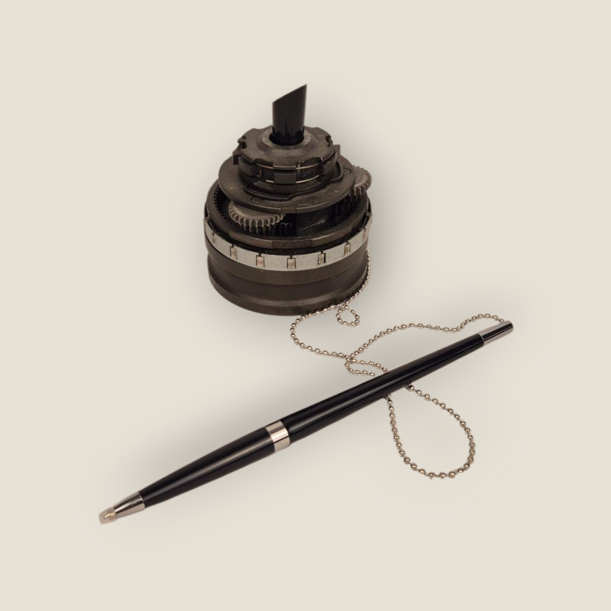 The sturdy metal hub provides a stable base, while the pen fits perfectly in the hand and is easy to replace. Ideal for cycling enthusiasts, sustainable entrepreneurs and anyone who loves unique, circular products.
